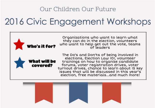 You are invited to attend one of our 2016 Civic Engagement Workshops being held around the state (Morgantown, Martinsburg, and Oak Hill). Register now!!!! http://www.ocofwv.org/
